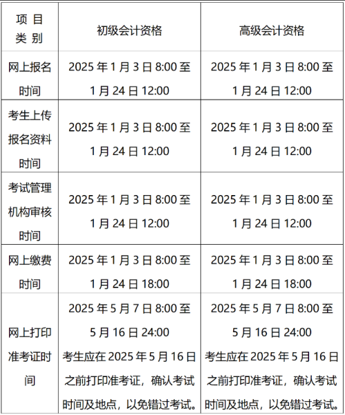 (一)初级会计资格考试于2025年5月17日至20日进行。具体安排如下: