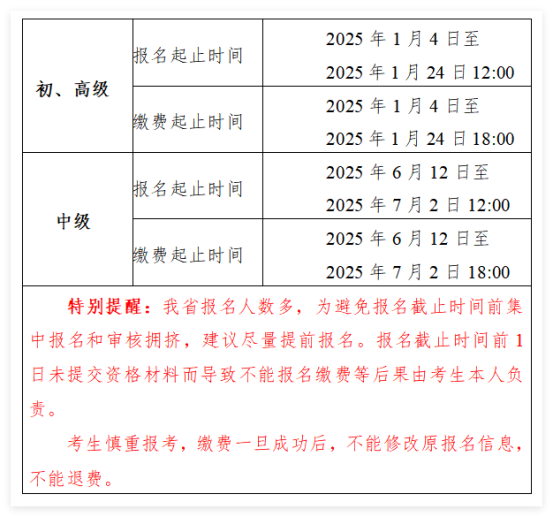 1.2025年1月2日前,各市会计考试管理机构公布明确本地区2025年度初级、高级资格考试科目、报名时间和考试时间等相关事项。