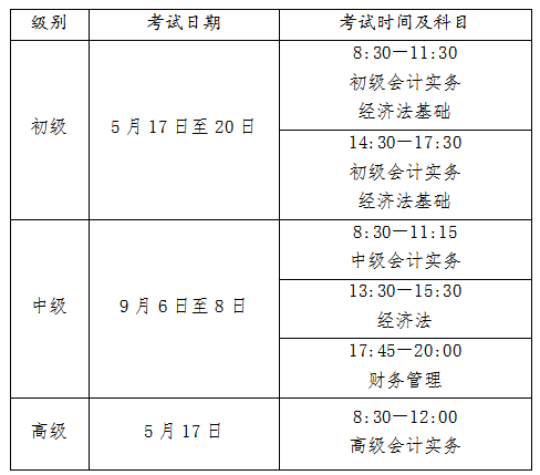 4.2025年5月17日至20日,组织初级会计资格考试,5月17日组织高级会计资格考试。