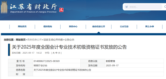 关于2025年度全国会计专业技术初级资格证书发放的公告