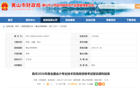 2026年安徽黄山初级会计报名人数已经公布!立即查看通知